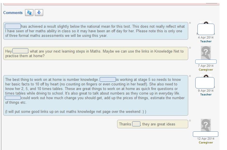 Feedback is a vital part of the learning journey. Engaged parents give feedback in an online environment (e-portfolios) and work with the teacher to support students' next learning steps.