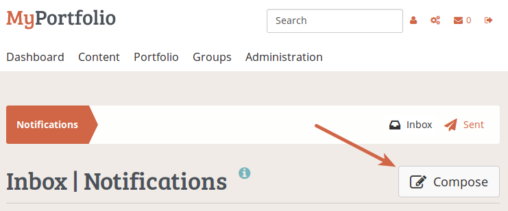 "Compose" button for easy sending of messages